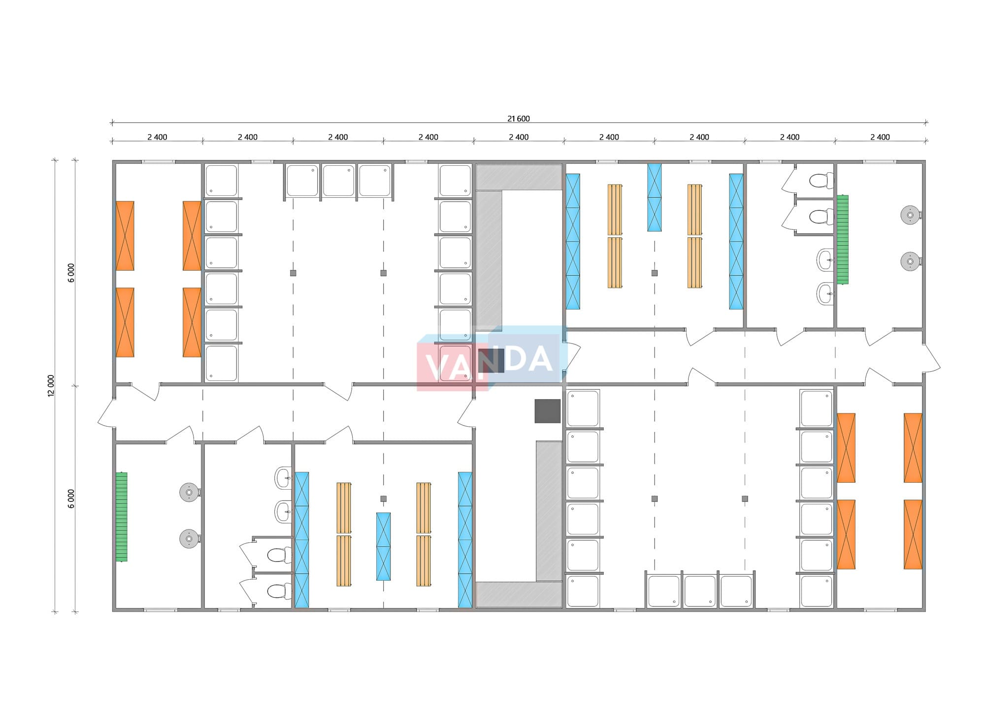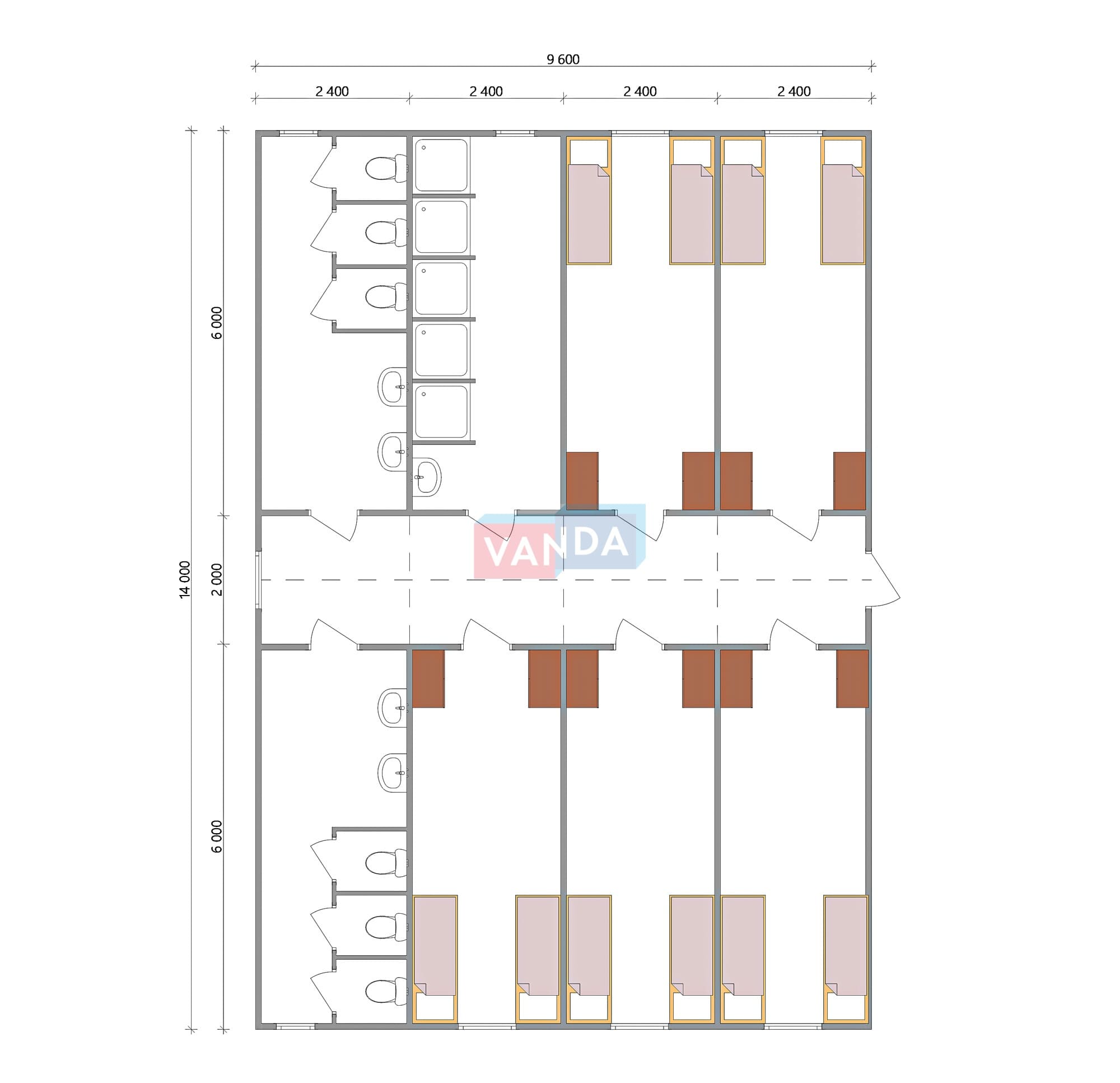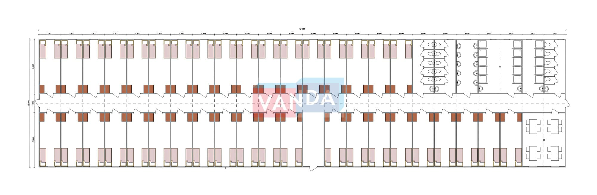 Проект вахтового посёлка 14.0х57,6 14x57.6 806.4 OSB 9 мм. Оцинкованный профлист 20 700 000 р. Уточняйте у менеджера