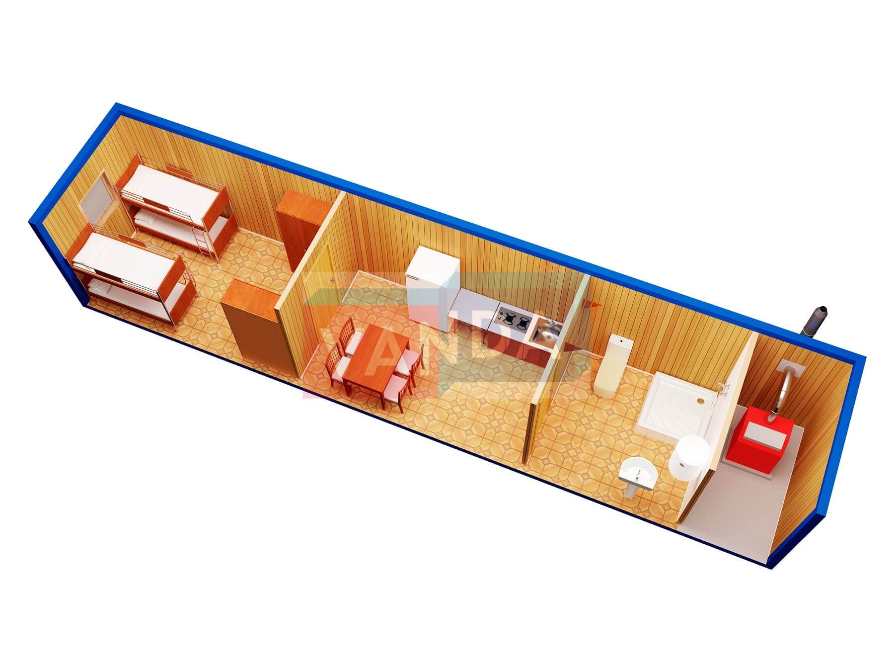 Металлическая бытовка с кухней в тамбуре 5,85 x 2,4 - Вагонка деревянная 5.85x2.4 14.04 Вагонка деревянная оцинкованный профлист 174 000 р. Уточняйте у менеджера